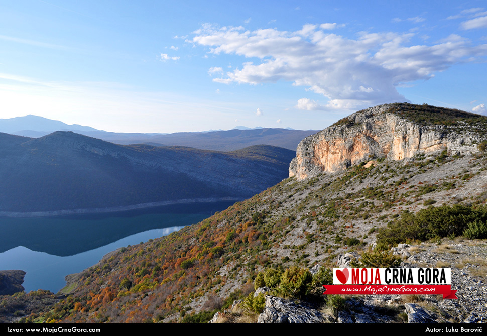 Crvena stijena je jedno od najznačajnijih arheoloških nalazišta u Evropi. Nalazi se na 50 kilometara udaljenosti od Nikšića u mjestu Petrovići, u samoj blizini granice i Bilećkog jezera, koje se vidi na donjoj fotografiji.